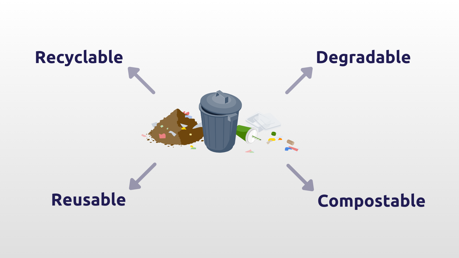 *Recyclable vs. recycled:* while many materials are deemed and labeled as recyclable, it does not mean that they will be effectively recycled. Efficient recycling only happens when several conditions are met: